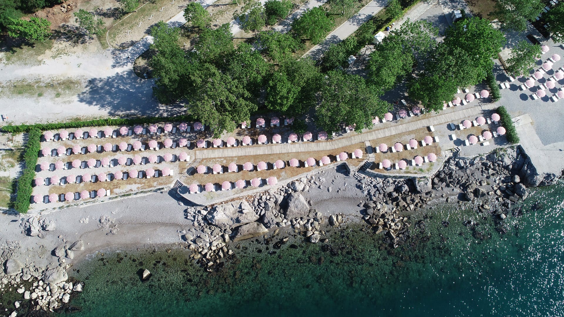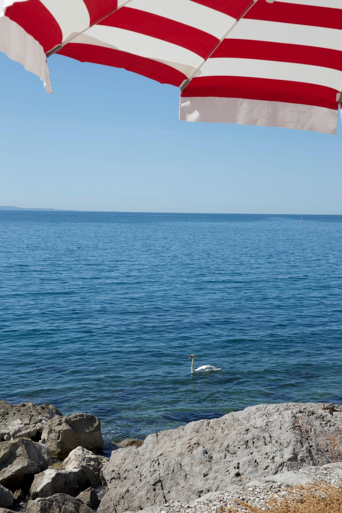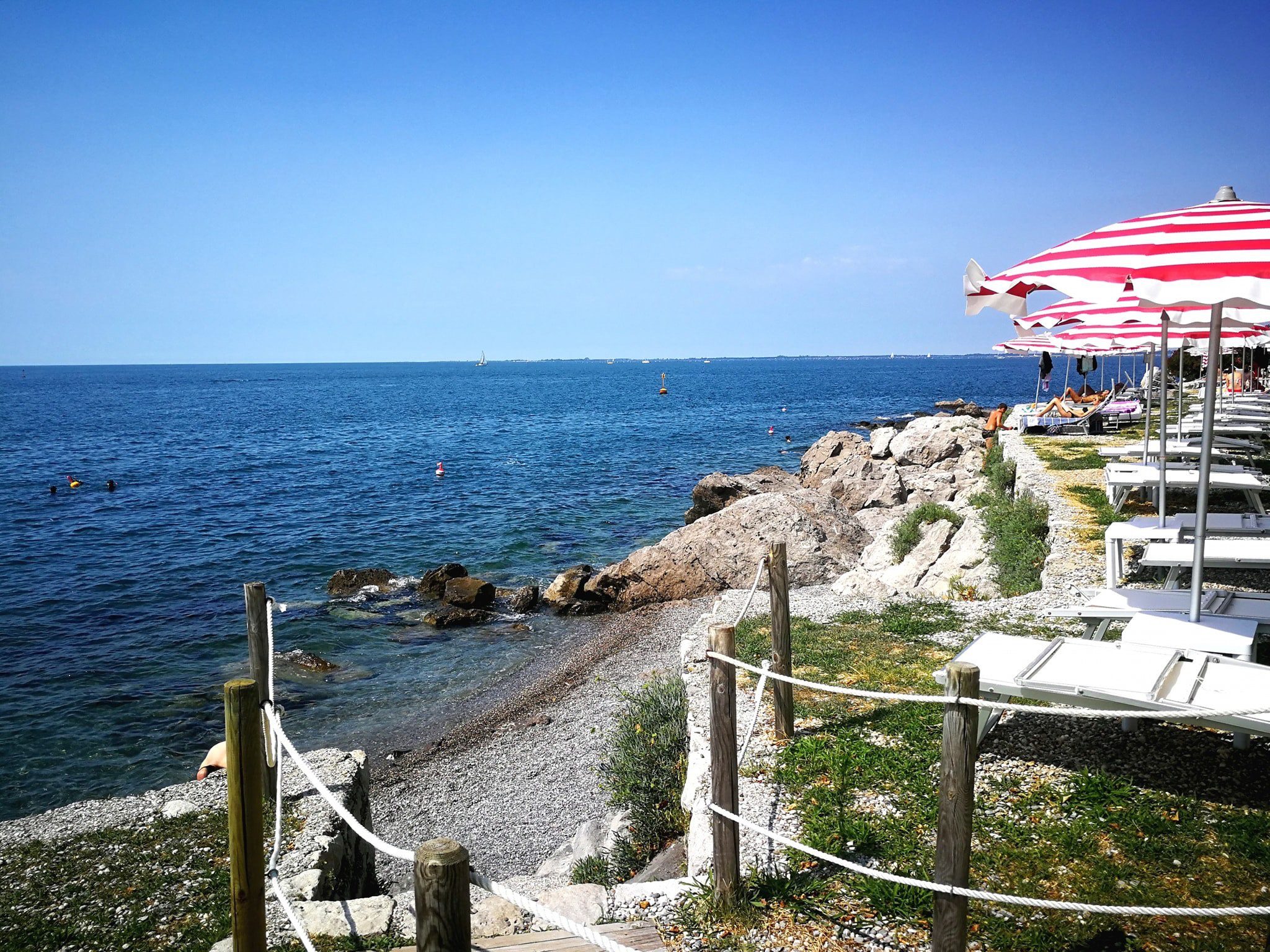 Le spiagge del Parco Caravella nella Baia di Sistiana sono tutte rocciose o in ciottoli, si da conferire al mare i colori e la trasparenza tipici.